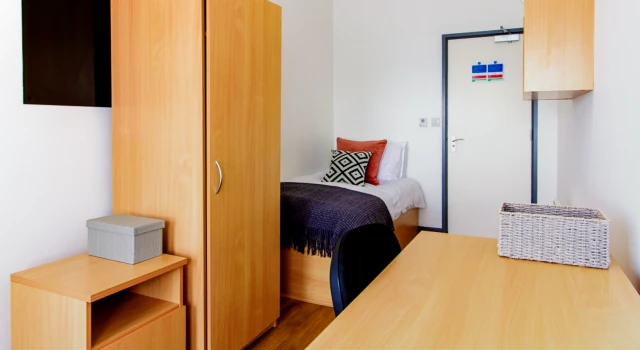 Alexandra Hall provides a choice of en-suites and non en-suites, all of which come with a large, comfy bed, a private study and ample storage. The share kitchen area is also well-euipped with basic appliances and a comfy seating.